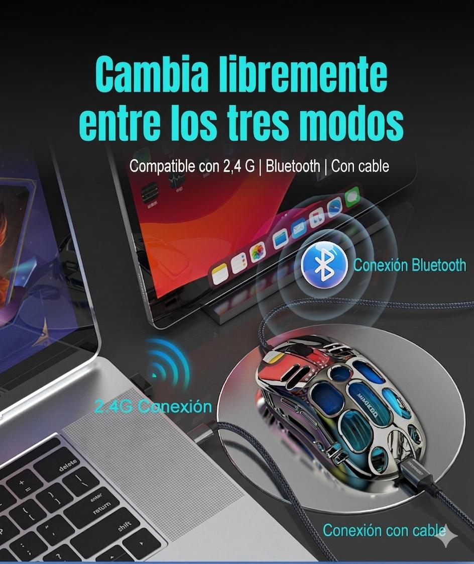 Mouse Inalámbrico Doble Modo | Diseño Hueco Metálico | 12000 DPI | RGB