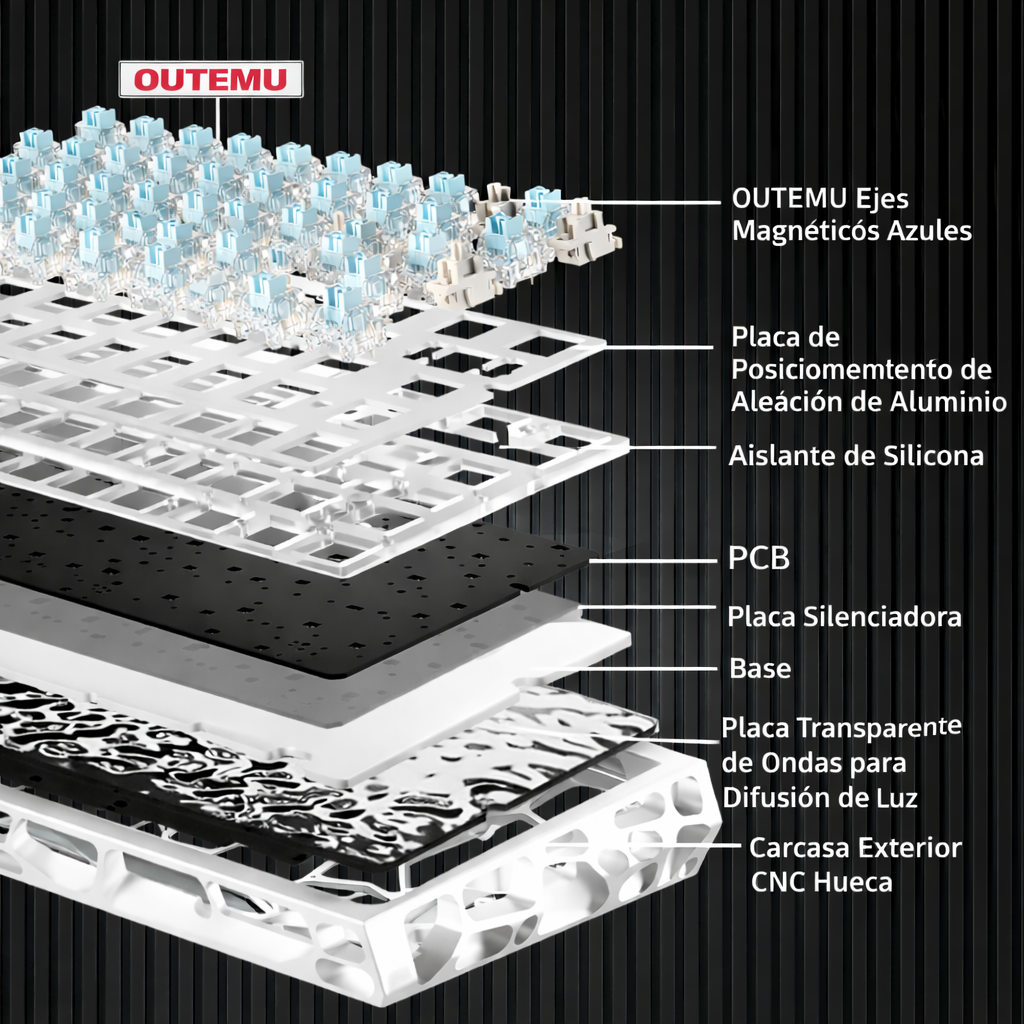 - Switch magnético Oetemu Ice Blue: Suavidad y respuesta ultrarrápida con sensación lineal premium.